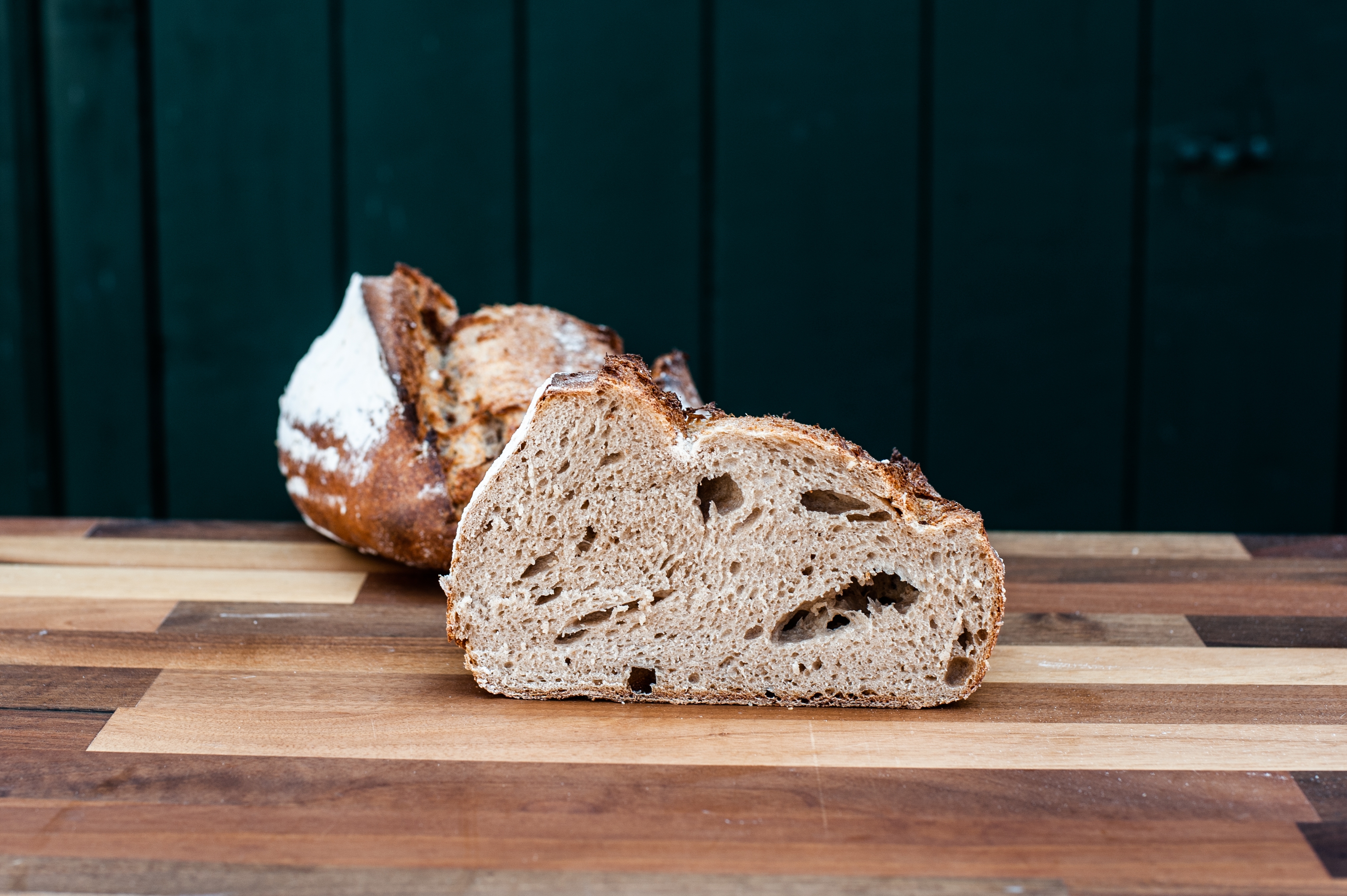 Een stevig volkoren desem broodje Ons meel wordt gemalen op de molen, hier 500 meter verderop, en is dus echt volkoren meel