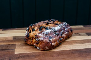 Ingrediënten: tarwebloem*, roomboter*, water, rozijnen*, krenten*, cranberries*, melkpoeder*, gist*, quérandezout