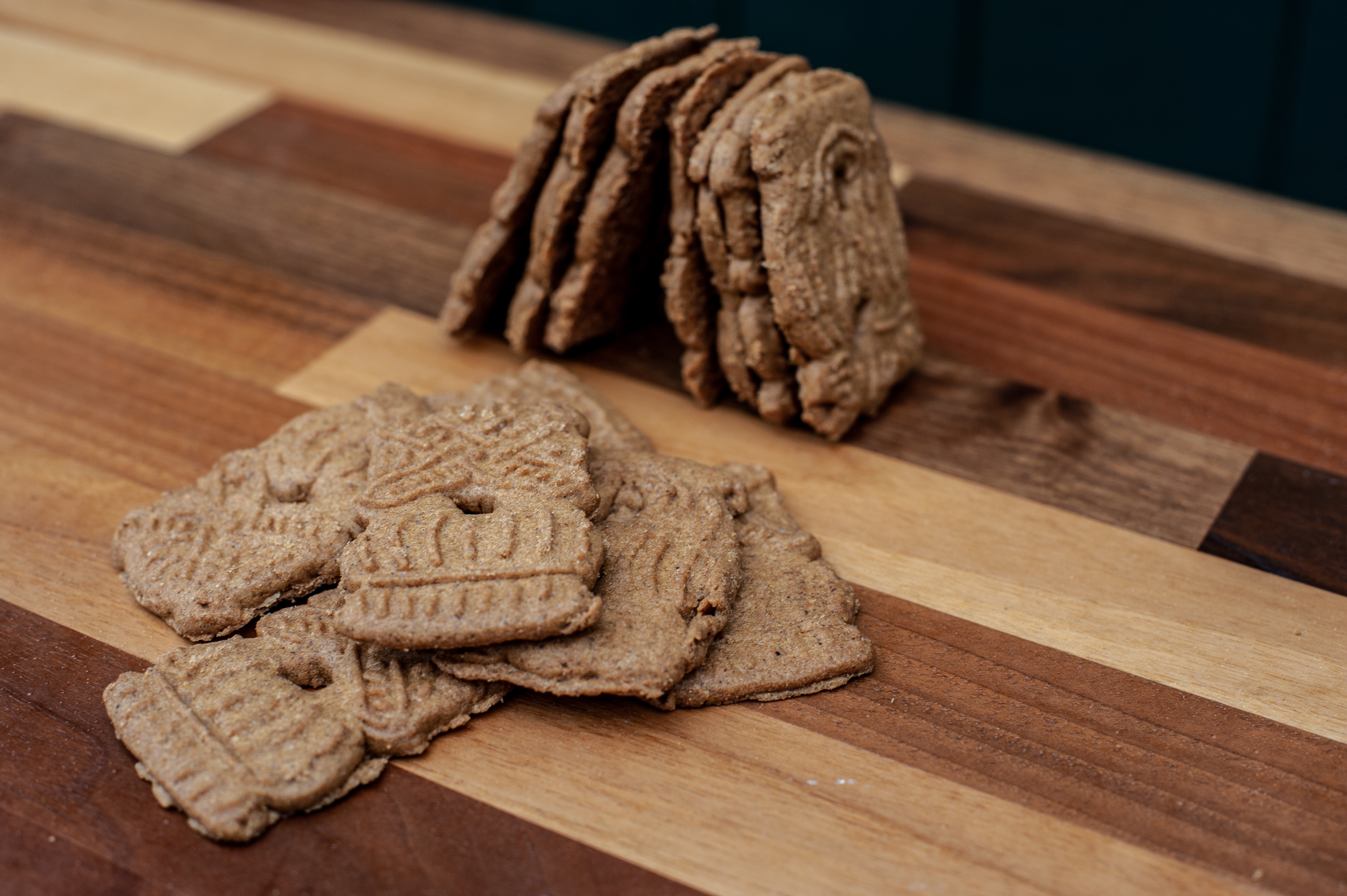 Ingredienten: speltbloem*roomboter*-rietsuiker*-karnemelk*-citroenrasp8-koolzuur-vanille*-quérandezout-amandelschaafsel*